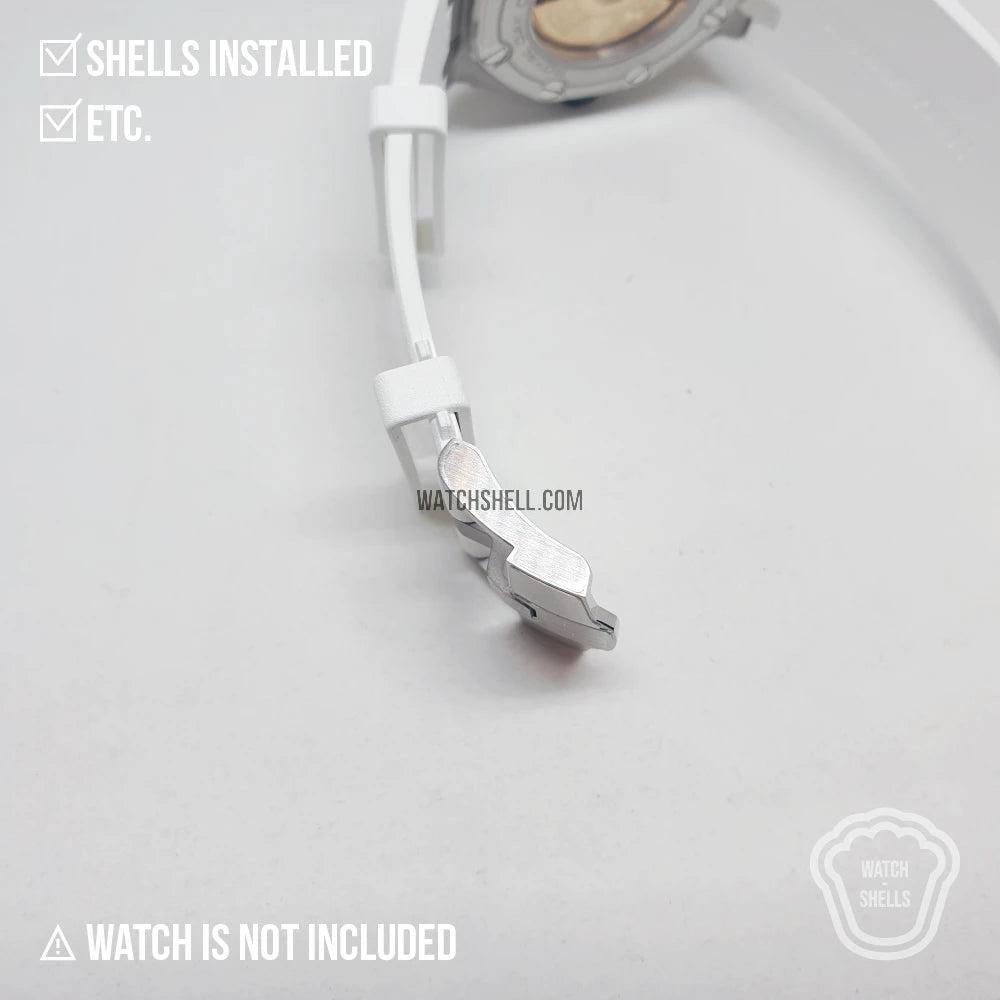 WatchShell® is NOT affiliated with other watch brands such as Audemars Piguet Holding SA, Lange Uhren GmbH, Blancpain SA, Montres Breguet SA, Cartier International SNC, Hublot SA, Jaeger-LeCoultre SA, Omega SA, Panerai, Patek Philippe SA, Piaget SA, Richard Mille, Rolex SA, Swatch Group Ltd., Montres Tudor SA, Vacheron Constantin SA, Zenith SA, or Casio Computer Co., Ltd. The intellectual property rights in watches, visuals, trademarks, names, and logos belong to their respective owners. All products and content on this site are the exclusive patented and copyrighted works of WatchShell®.