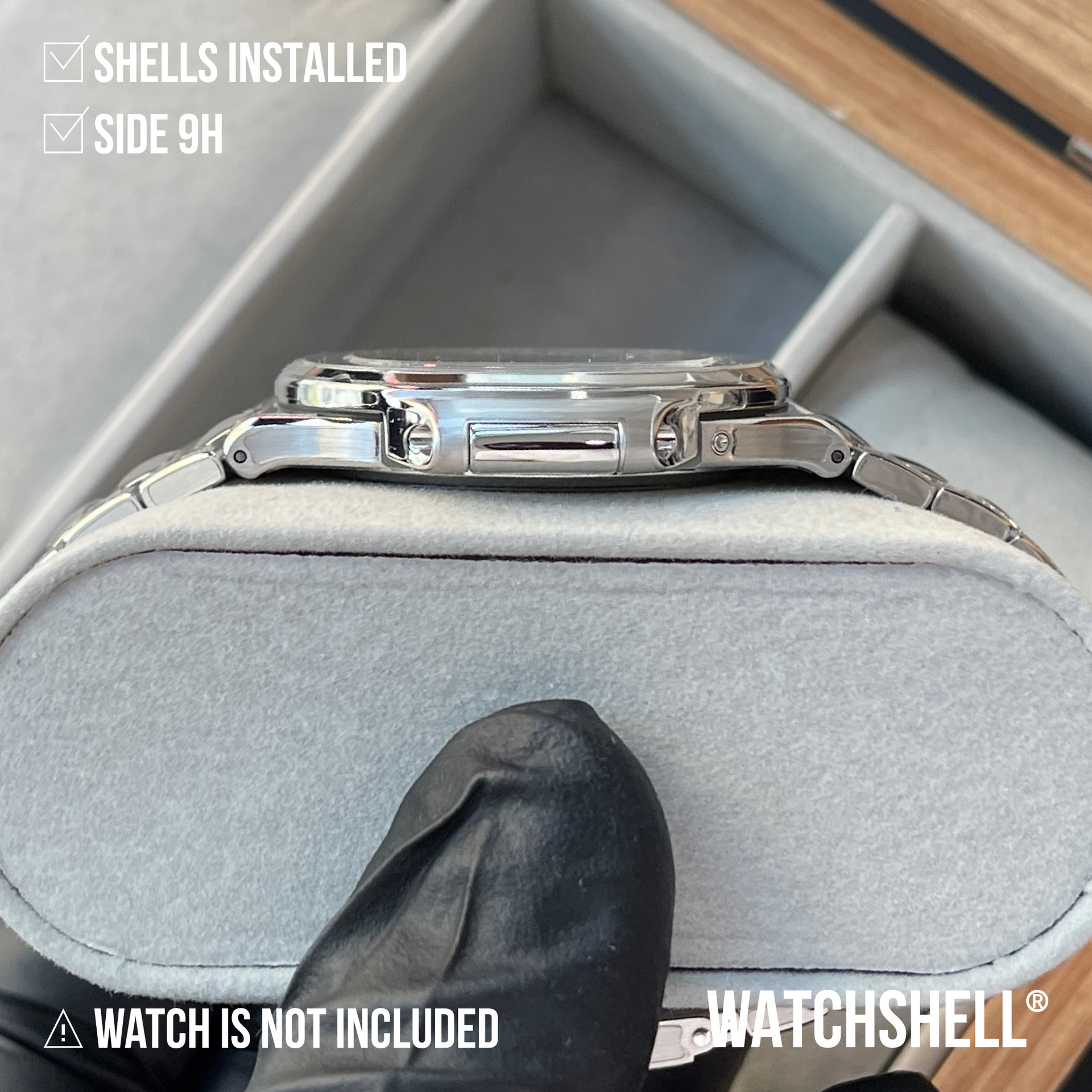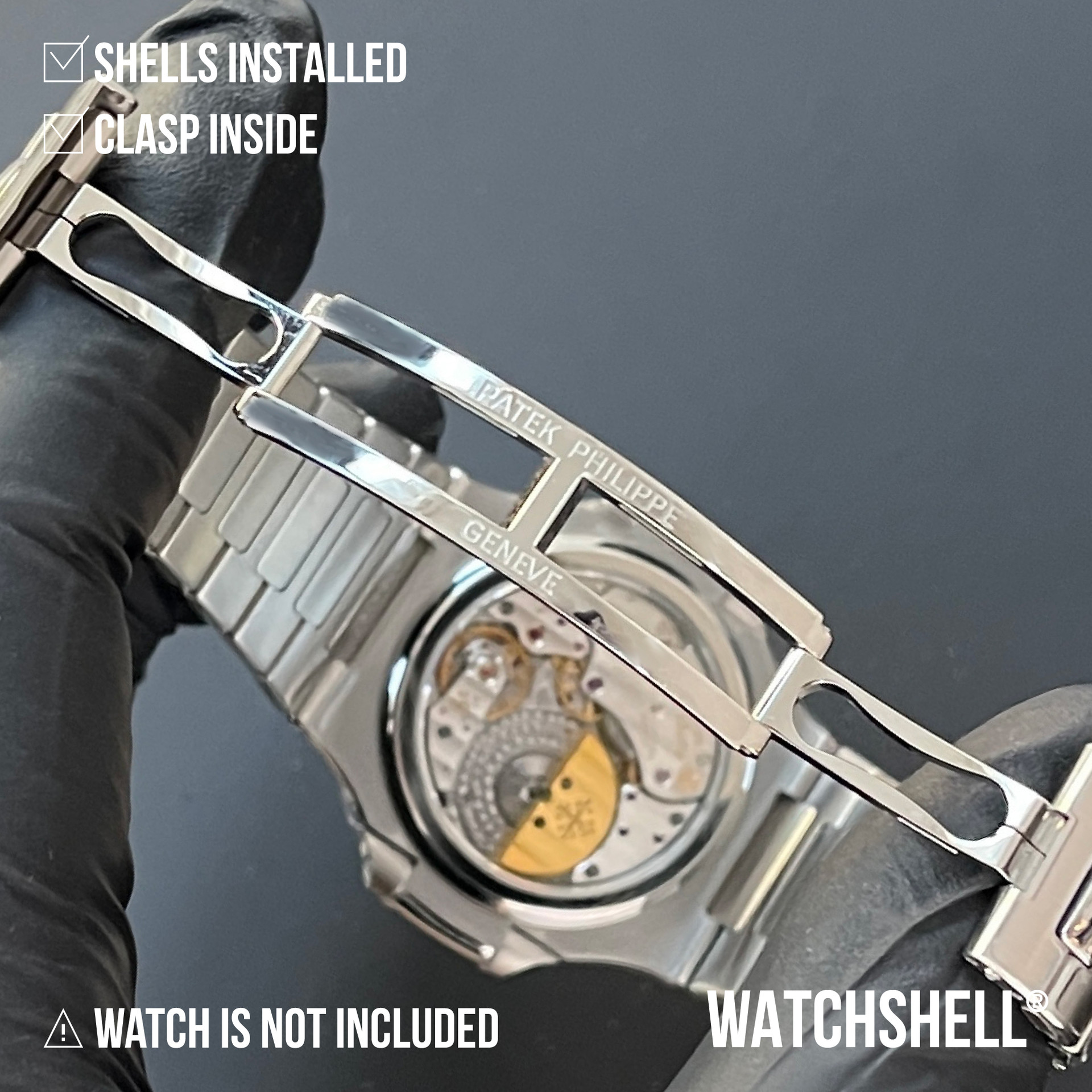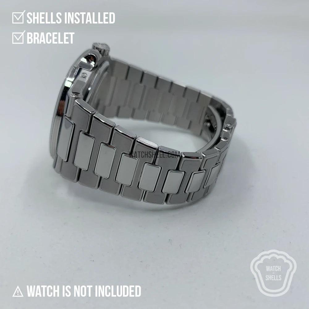 WatchShell® is NOT affiliated with other watch brands such as Audemars Piguet Holding SA, Lange Uhren GmbH, Blancpain SA, Montres Breguet SA, Cartier International SNC, Hublot SA, Jaeger-LeCoultre SA, Omega SA, Panerai, Patek Philippe SA, Piaget SA, Richard Mille, Rolex SA, Swatch Group Ltd., Montres Tudor SA, Vacheron Constantin SA, Zenith SA, or Casio Computer Co., Ltd. The intellectual property rights in watches, visuals, trademarks, names, and logos belong to their respective owners. All products and content on this site are the exclusive patented and copyrighted works of WatchShell®.