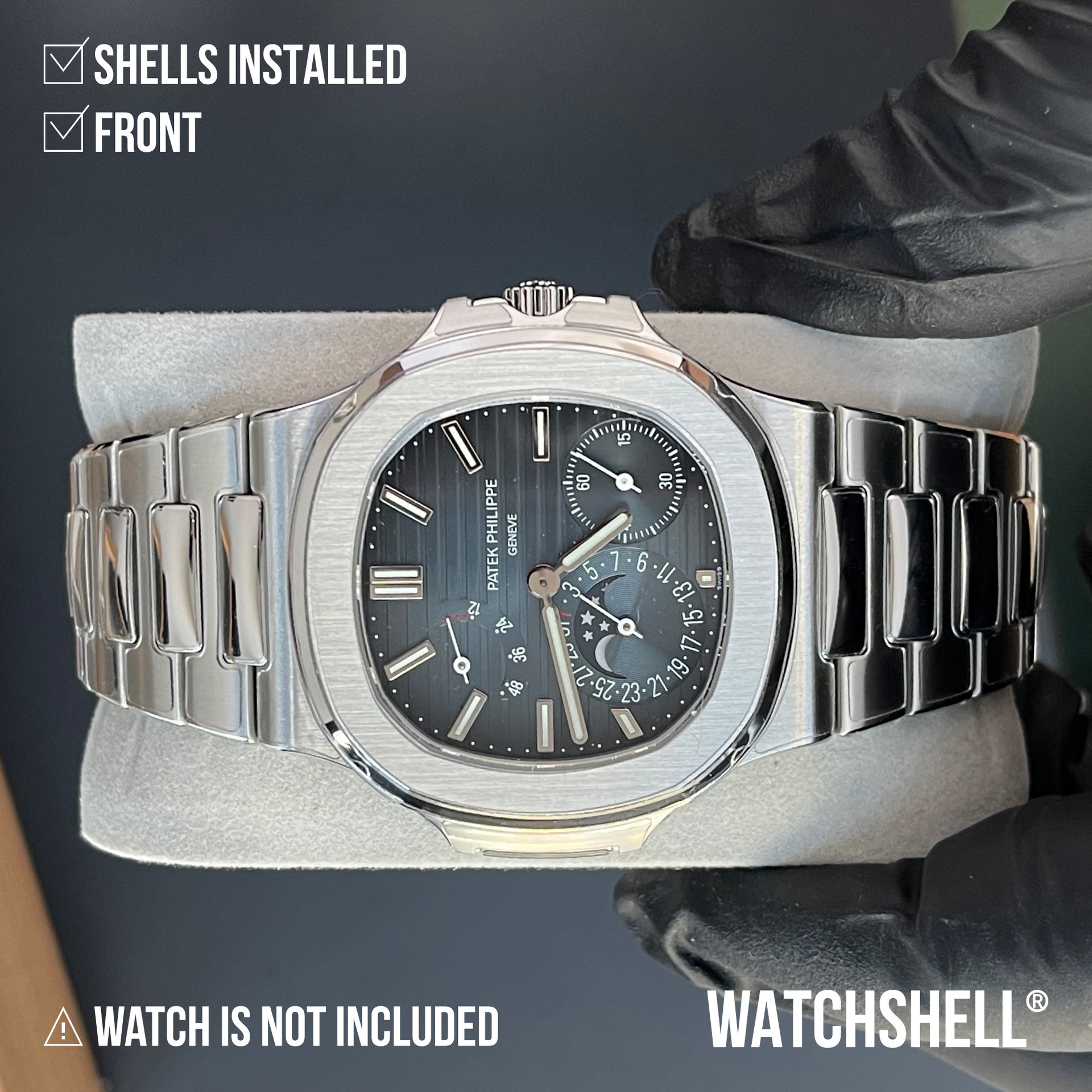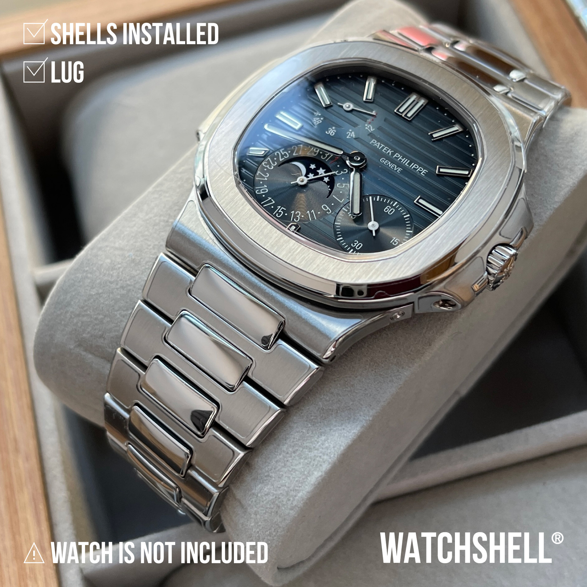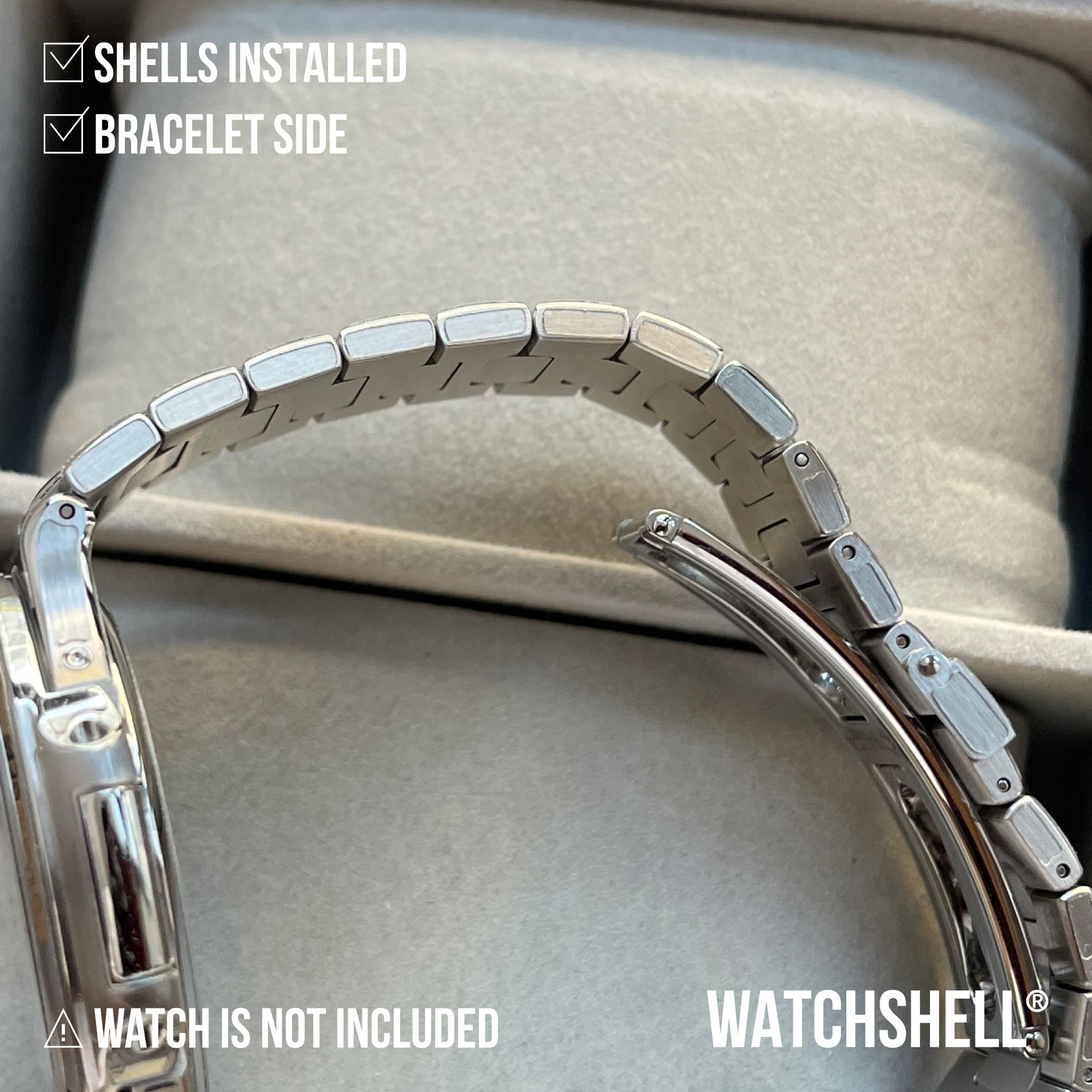 WatchShell® is NOT affiliated with other watch brands such as Audemars Piguet Holding SA, Lange Uhren GmbH, Blancpain SA, Montres Breguet SA, Cartier International SNC, Hublot SA, Jaeger-LeCoultre SA, Omega SA, Panerai, Patek Philippe SA, Piaget SA, Richard Mille, Rolex SA, Swatch Group Ltd., Montres Tudor SA, Vacheron Constantin SA, Zenith SA, or Casio Computer Co., Ltd. The intellectual property rights in watches, visuals, trademarks, names, and logos belong to their respective owners. All products and content on this site are the exclusive patented and copyrighted works of WatchShell®.