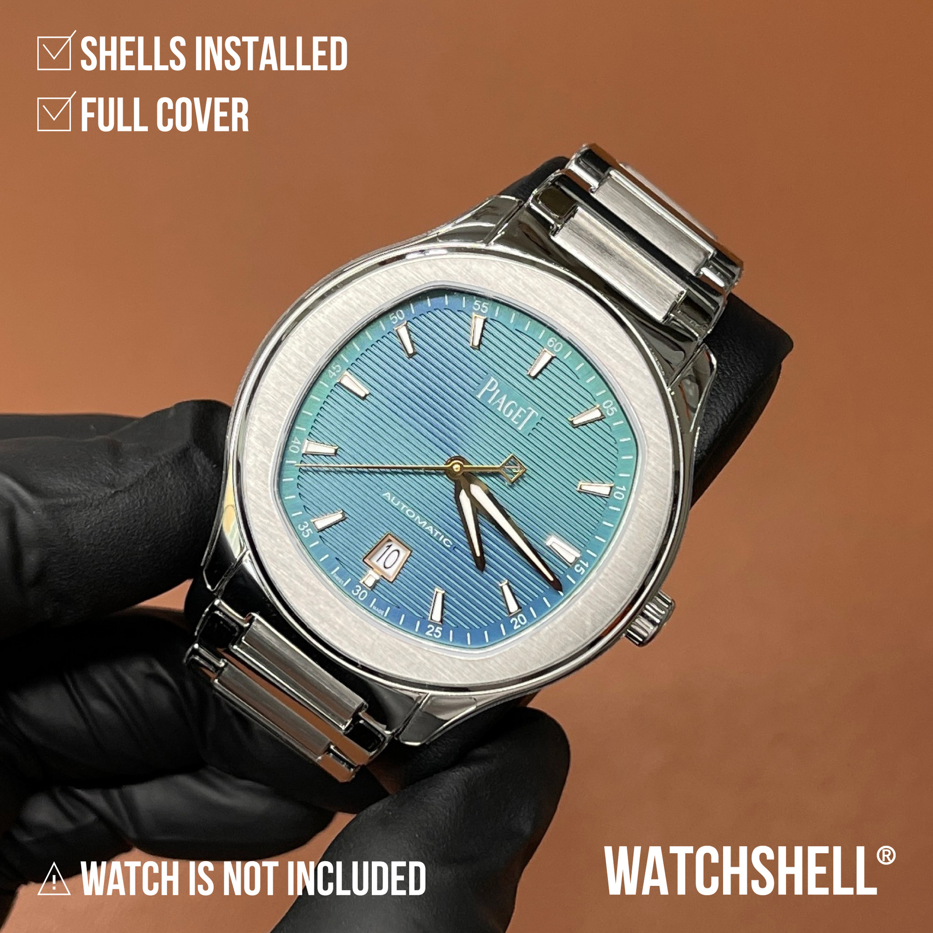 WatchShell® is NOT affiliated with other watch brands such as Audemars Piguet Holding SA, Lange Uhren GmbH, Blancpain SA, Montres Breguet SA, Cartier International SNC, Hublot SA, Jaeger-LeCoultre SA, Omega SA, Panerai, Patek Philippe SA, Piaget SA, Richard Mille, Rolex SA, Swatch Group Ltd., Montres Tudor SA, Vacheron Constantin SA, Zenith SA, or Casio Computer Co., Ltd. The intellectual property rights in watches, visuals, trademarks, names, and logos belong to their respective owners. All products and content on this site are the exclusive patented and copyrighted works of WatchShell®.