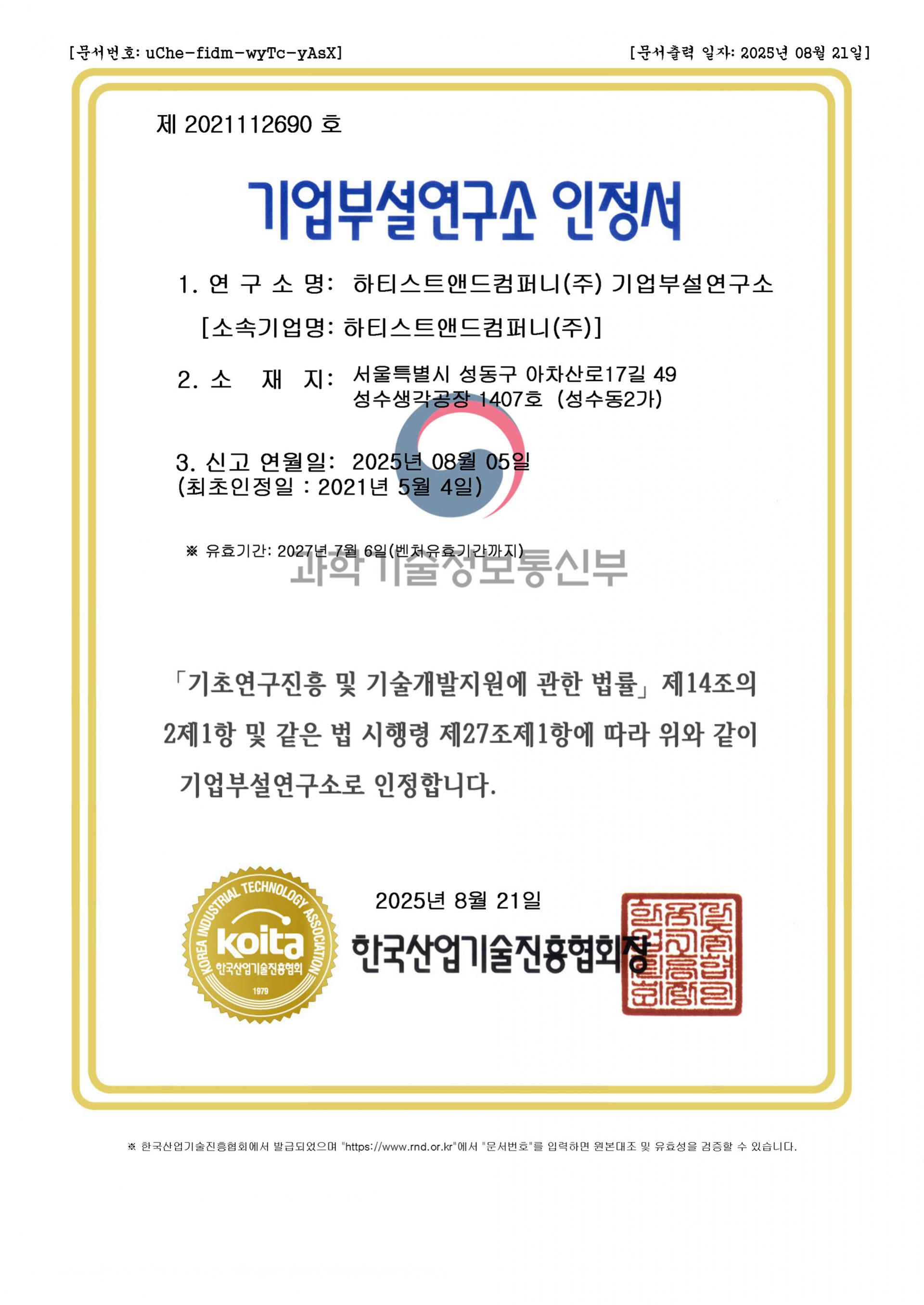 16. R&D Center Certificate